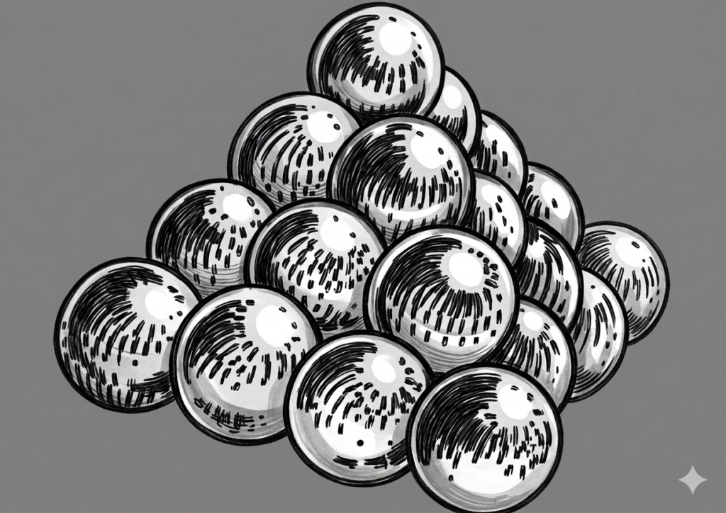 Attention au piège classique ! La hauteur d’une pile de sphères n’est pas simplement la somme de leurs diamètres. Les centres des billes des étages supérieurs se logent dans les creux formés par l’étage du dessous.